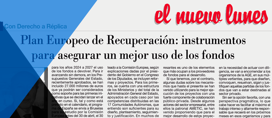 No creo que exista un solo lector interesado en estos temas que no haya dispuesto ya de múltiples informaciones sobre los fondos de Recuperación, Transformación y Resiliencia. Existen, desde hace semanas, muy documentadas versiones que, elaboradas por todos los medios de comunicación, se refieren a las cuantías, los destinos y los plazos de esos fondos. El objetivo de estas líneas es poner el foco en un aspecto menos tratado, pero no por ello menos crucial para el éxito de tan ambicioso proyecto: ¿cuáles van a ser los instrumentos que se van a utilizar para asegurar el mejor uso de los fondos?