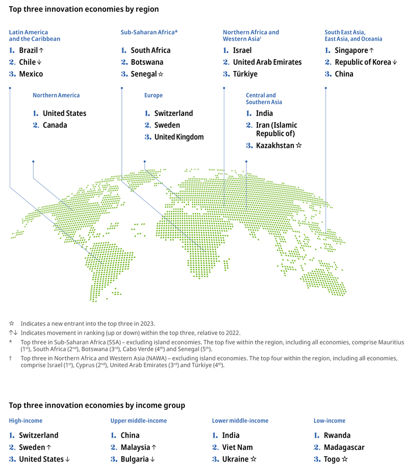 - The socioeconomic impact of innovation continues to be at a low point for the second year in a row, in part due to the short-term impact of COVID-19. Labor productivity is currently at a standstill. Life expectancy fell for a second consecutive year, while the increase in healthy life expectancy slowed. Carbon dioxide emissions rose strongly in 2021, but less so in 2022. Although the first four months of 2023 point to only a modest rise, CO2 emissions continue to increase. If this trend persists, there is no global reduction in CO2 emissions on the horizon.